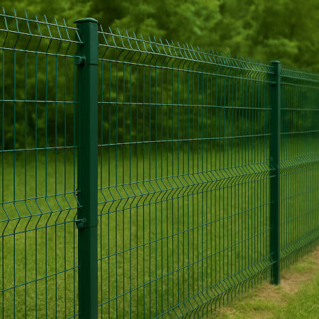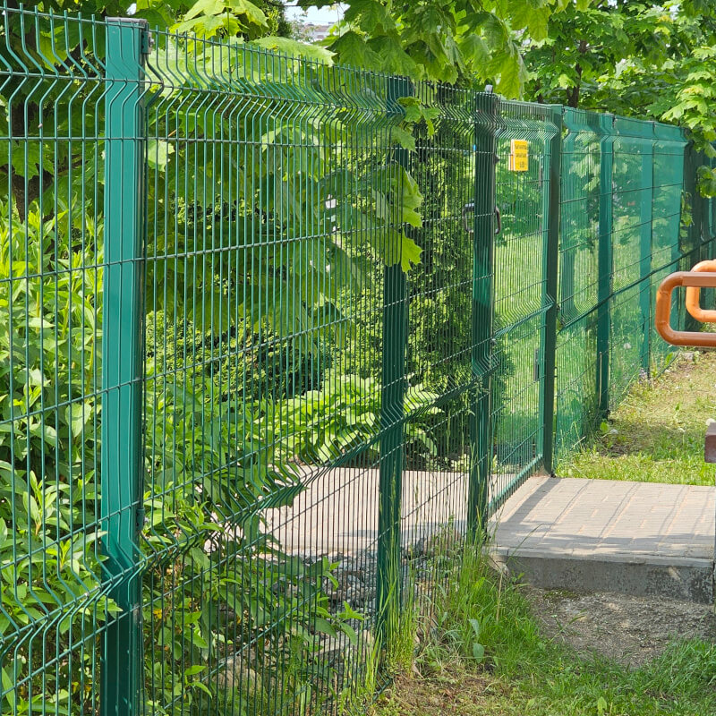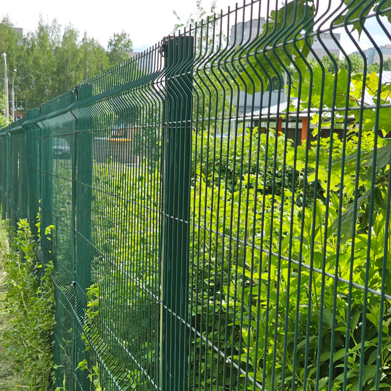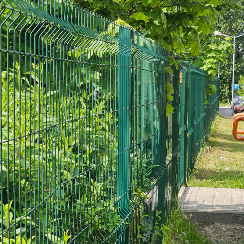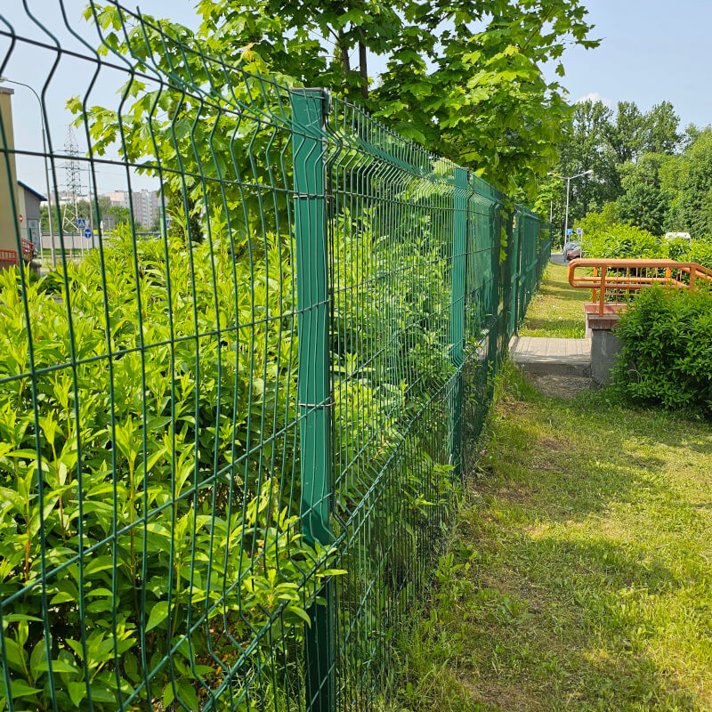 - сварной забор из 3D панелей (изогнутые, острые по верху ряда пруты из металла, обработаны полимерным покрытием; имеет самый максимальный срок эксплуатации, который составляет 30 и более лет),