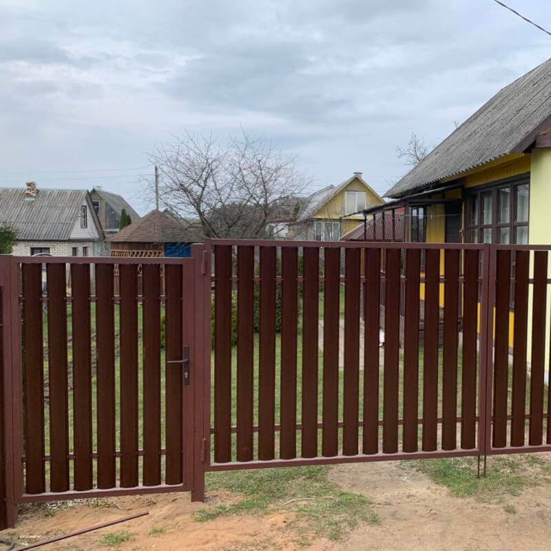 Чаще всего вместе с оградой люди заказывают установку калитки (для входа на вашу территорию) и ворот (откатные ворота - каркас в полимерном покрытии, экономия места на участке; распашные ворота - открытие внутрь / наружу, с засовом и без; комбинированные ворота), ведь это выгодно! Важно - обшивка будет аналогична выбранному материалу, одного цвета с окраской, автоматика и фурнитура откатных и распашных ворот выбирается предварительно.